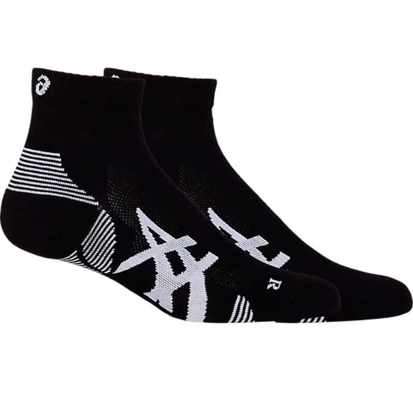 The 2 PACK CUSHIONED RUN QUARTER SOCK from Asics is a pack of two pairs of socks designed for running that has a tailored design to ensure more effective cushioning in the heel and toe.