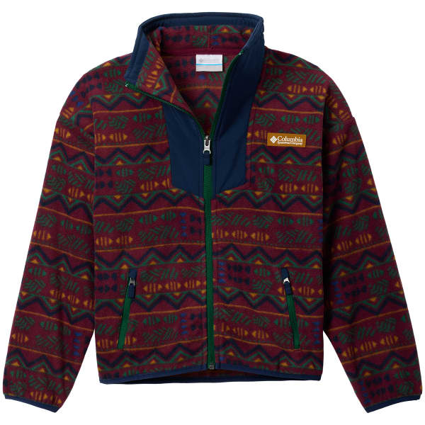 The SEQUOIA GROVE PRINTED FULL ZIP fleece jacket for children from Columbia is an essential piece for those seeking warmth and durability, while respecting the environment.Made from 100% recycled polyester, this jacket combines eco-responsibility with performance. The zipped hand pockets offer secure storage for your essentials, while the woven topstitching adds a touch of style and toughness.Stretch trims at the collar, cuffs and hem ensure a comfortable fit and keep the warmth in. The full zip makes it easy to put on and take off, while offering adjustable ventilation.Ideal for outdoor activities or everyday use, this jacket combines comfort and functionality.
