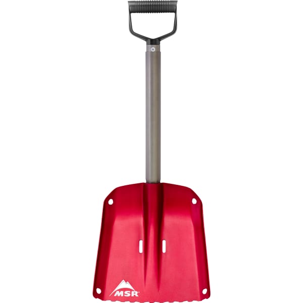 The MSR OPERATOR shovel is made of heavy-duty anodized aluminum to provide maximum shoveling efficiency and durability. Its wide, raised-edge blade allows for both efficient snow removal and smarter storage.