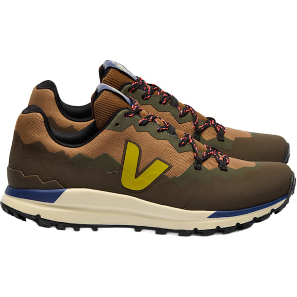 This model is cut out for adventure and exploits VEJA's emblematic designs as well as the inspirations of BUFF®. The Trek-Shell upper is made from a tough, tightly woven fabric for a comfortable, stable fit. The shoe is also treated with a PFC-free water-repellent to keep your feet dry in light rain or on damp ground.